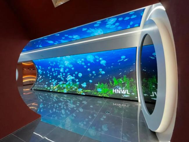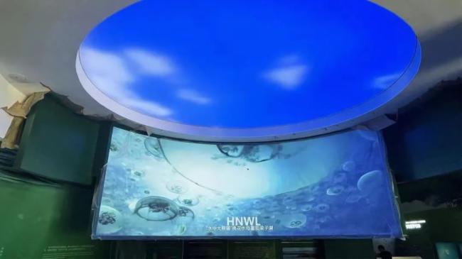 显屏区域多以异形屏展示为主,相对于传统的固装屏而言,异形屏赋予了它更多的“灵性 ”。跟随着参观动线的游走,聆听着专业团队的讲解,辅以LED异形屏的显示效果,“梁子湖水的浪漫,生态文明的奥秘”逐步呈现。