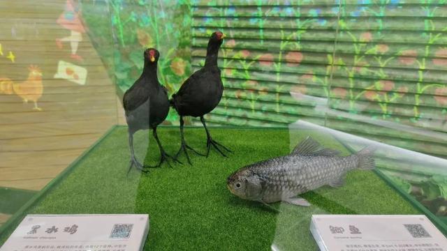 物种天堂展厅中,一个个物种的标本陈列于展厅之中,旁边辅以互动视频向游客详尽介绍梁子湖的丰富物种文化。